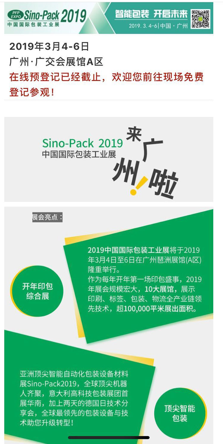 2019年3月4-6号Sino-Pack 2019中国(广州)国际包装工业展